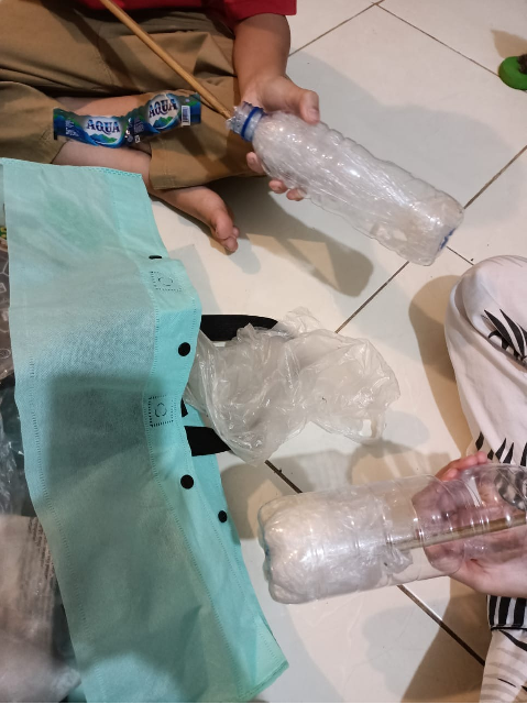 Tahap 3 : kami mengerjakan ecobrick di ruang keluarga agar leluasa